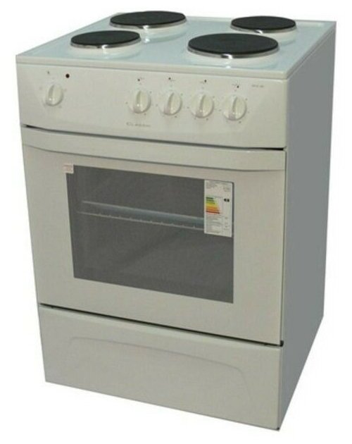 Плита электрическая с 4 чугунными электроконфорками, стиль панорамный объемный, терморегулятор, пятипозиционный переключатель режимов жарочного шкафа, ступенчатые переключатели режимов работы электроконфорок, освещение, выдвижной ящик. Плита укомплектована уникальным комплектом "Exstra effect", регулируемыми опорами. Класс энергопотребления "А".