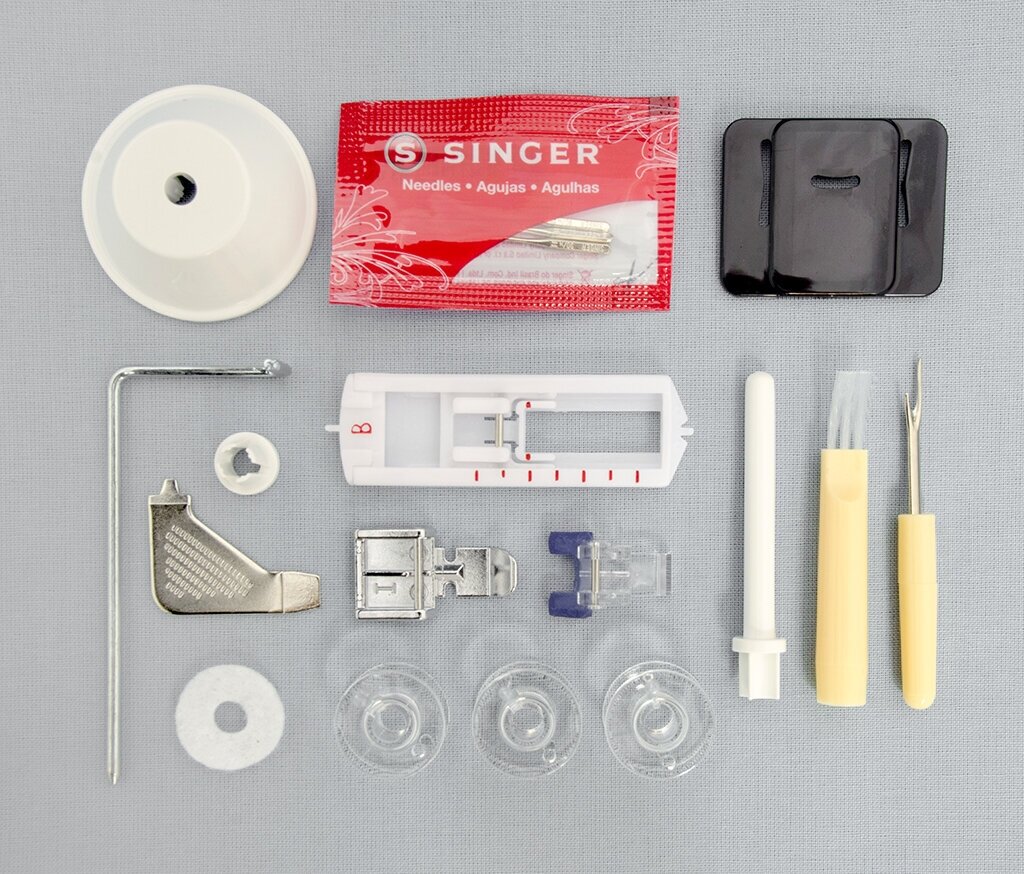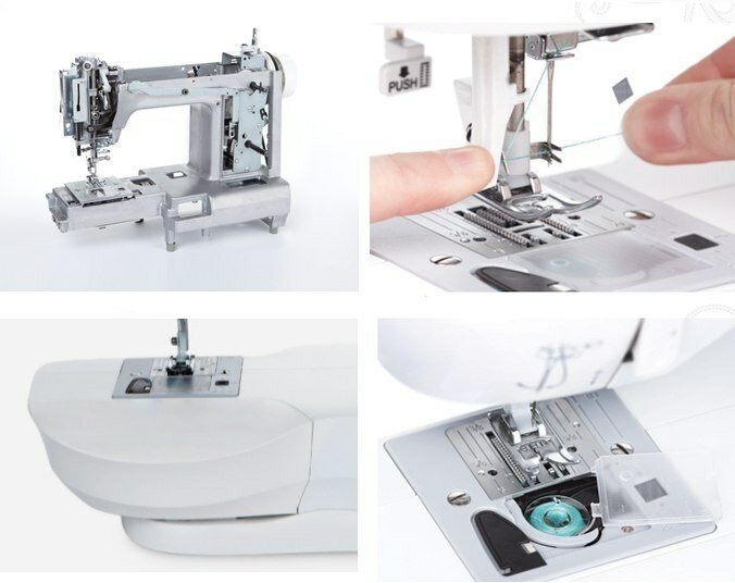 | Дополнительная комплектация | направитель, комплект игл, нож-вспарыватель, шпулька (3 шт.), отвертка, щеточка, стержень для второй катушки, фетровая прокладка, пластина для штопки и вышивки |