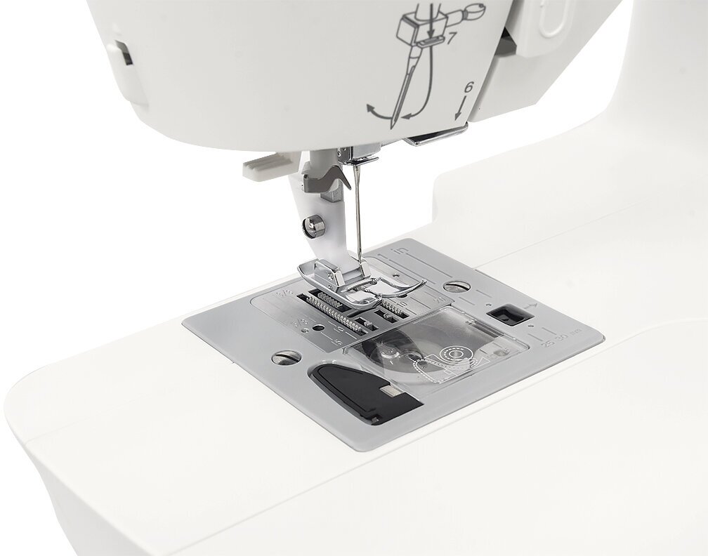 Рекомендую эту неплохую бюджетную модель! Видно, что машинка собрана очень качественно. Корпус изготовлен из приятного пластика. Регулировки осуществляются с помощью эргономичного пластикового колеса. Лапка прижимает тканевую заготовку очень хорошо. Отмечу, что важно правильно подобрать иглу под ткань. Если ошибиться, загибает и ломает иглы в легкую! Конечно, хотелось бы, чтобы петля делалась в один шаг, но для этого стоило брать профессиональную модель.