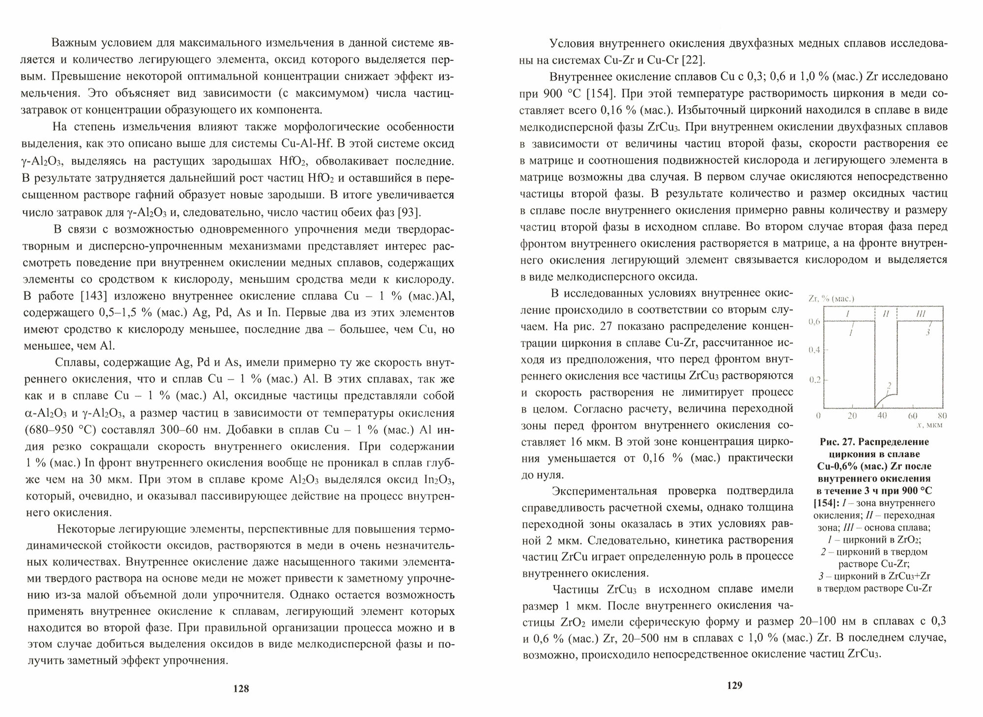Рассмотрен один из перспективных методов получения дисперсноупрочненных материалов – внутреннее насыщение низколегированных сплавов кислородом и азотом. Приведен подробный анализ процесса насыщения. Содержатся сведения о внутреннем окислении сплавов на основе меди, серебра, железа, никеля, молибдена, вольфрама, платины и внутреннем азотировании сплавов на основе молибдена, вольфрама, железа и других металлов. Представлены материалы о термической стабильности дисперсной структуры, механических и некоторых служебных свойствах сплавов после насыщения.