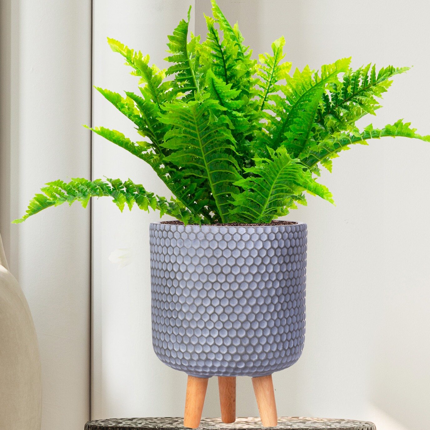 Инновационный материал файберстоун. Матовая текстура в сочетании с эффектным орнаментом. Кашпо на ножках из натурального бука Легкий вес. Изготовлено вручную. Для интерьерного озеленения Современное озеленение на высотеВ центре внимания: близость к природе.Так легко создать райский уголок в мегаполисе с кашпо на ножках из коллекции «Ханни»! Эффектный орнамент в виде сот и округлые линии кашпо тонко подчеркнут красоту растения. "Ханни" - эстетика в фитодизайне.Высокая прочность и современный вид. В основе – инновационный качественный материал файберстоун. Благодаря этому прочному композитному материалу горшки сохраняют свои характеристики, благородный внешний вид и аутентичность на долгое время. На вершине дизайна. Матовые поверхности, приятные фактуры и природные цвета идеально передают текстуру камня и впечатляют, увлекают, завораживают! Горшки IDEALIST LITE сделаны вручную. Поверхность может иметь следы ручной обработки в виде легких сколов или потертостей. Это придает горшкам естественность и свидетельствует о творческом процессе производства. С помощью рук гончаров рождаются настоящие шедевры! Выбор в разнообразии. Коллекции IDEALIST LITE - это десятки форм, стилей и размеров, которые станут современной основой для озеленения и дизайна любого пространства: и небольшой квартиры, и просторного дома, и крупных общественных помещений. Удобство перемещения. Не удивляйтесь, солидный внешний вид и высокое качество исполнения IDEALIST LITE не превращают их в громоздких тяжеловесов. Благодаря использованию современного материала файберстоун даже самые крупные горшки остаются вполне мобильными. Защита природы - материал может быть переработан. Используя горшки IDEALIST, вы заботитесь о нашем наследии, ведь горшки можно переработать и не загрязнять природу! Возможность дренажа. В ряде моделей на дне есть специальная метка, которая позволяет просверлить дренажное отверстие.