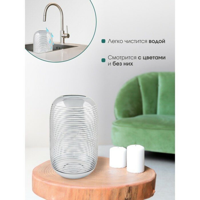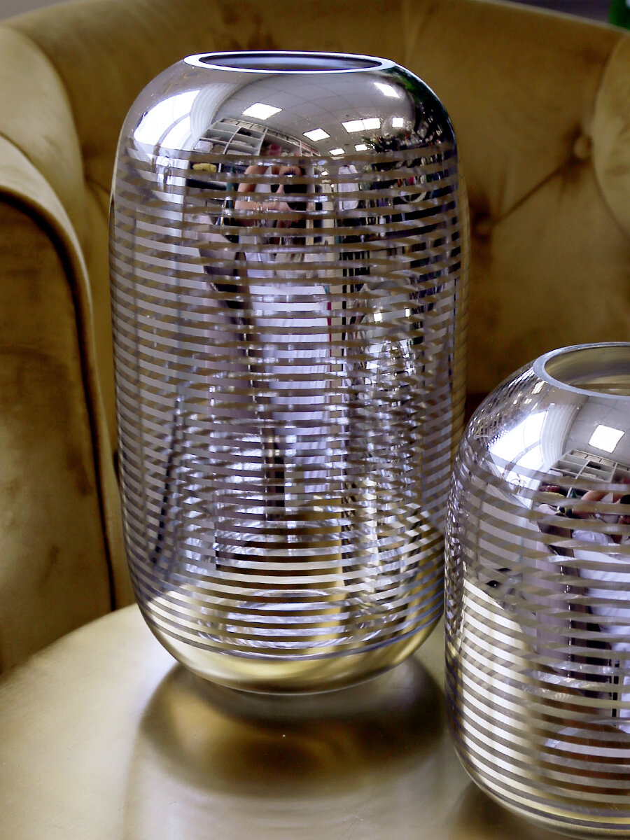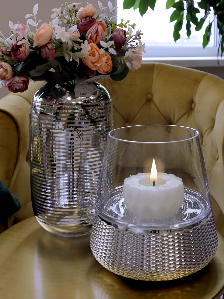 Игру света от свечи на серебристых гранях декоративной вазы-подсвечника невозможно описать словами. Будто оказался неожиданно посреди Млечного пути, в окружении мерцающих звезд. Впечатление усиливают округлые, мягкие формы изделия. Такие вазы из стекла добавят загадочности классическим интерьерам и пространствам, оформленным в современных роскошных стилях. А в минималистичный дизайн добавят блеска высокой моды.
