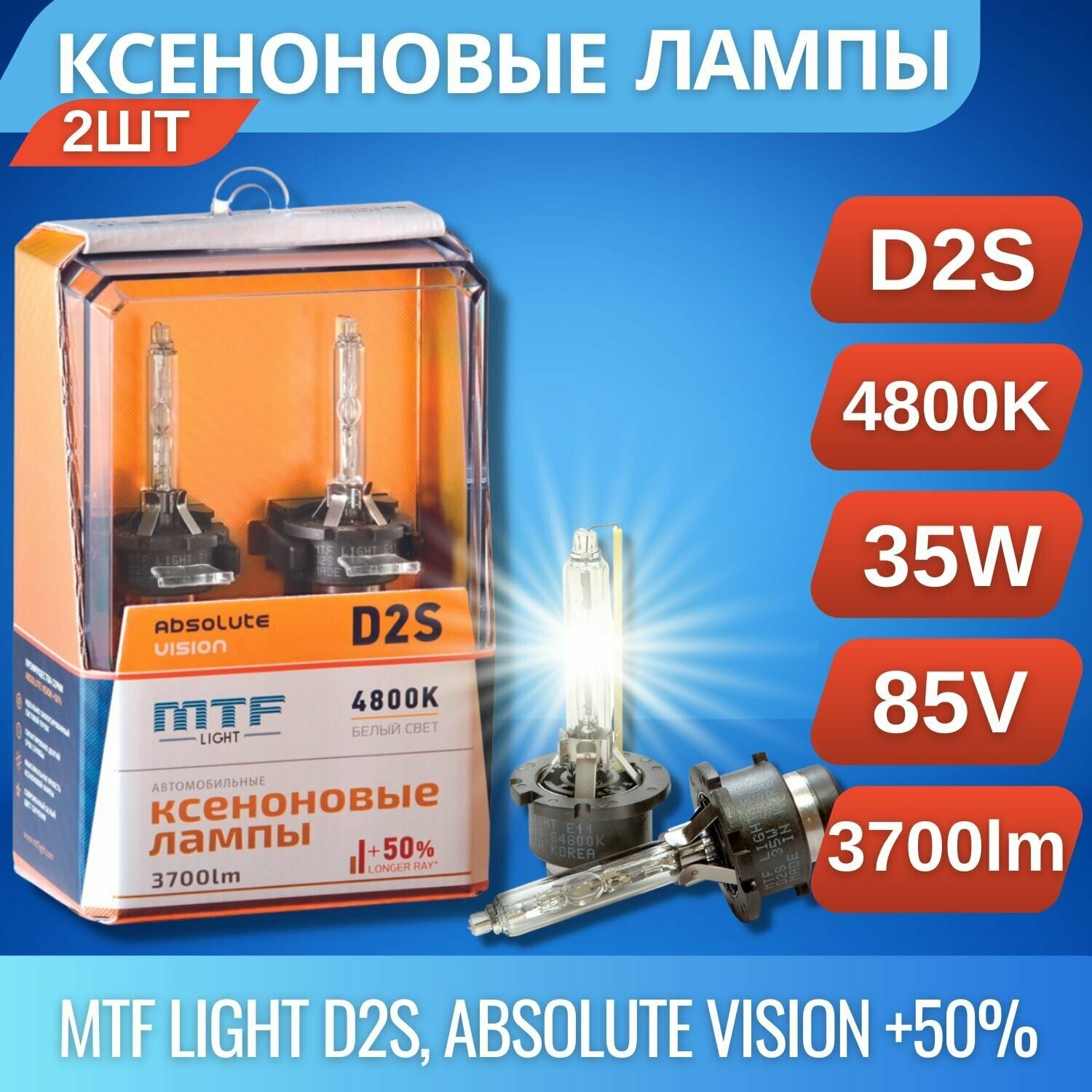 Лампа ксеноновая MTF Light Absolute Vision +50% D2S 12V 35W 4800K (AVBD2S) 2шт