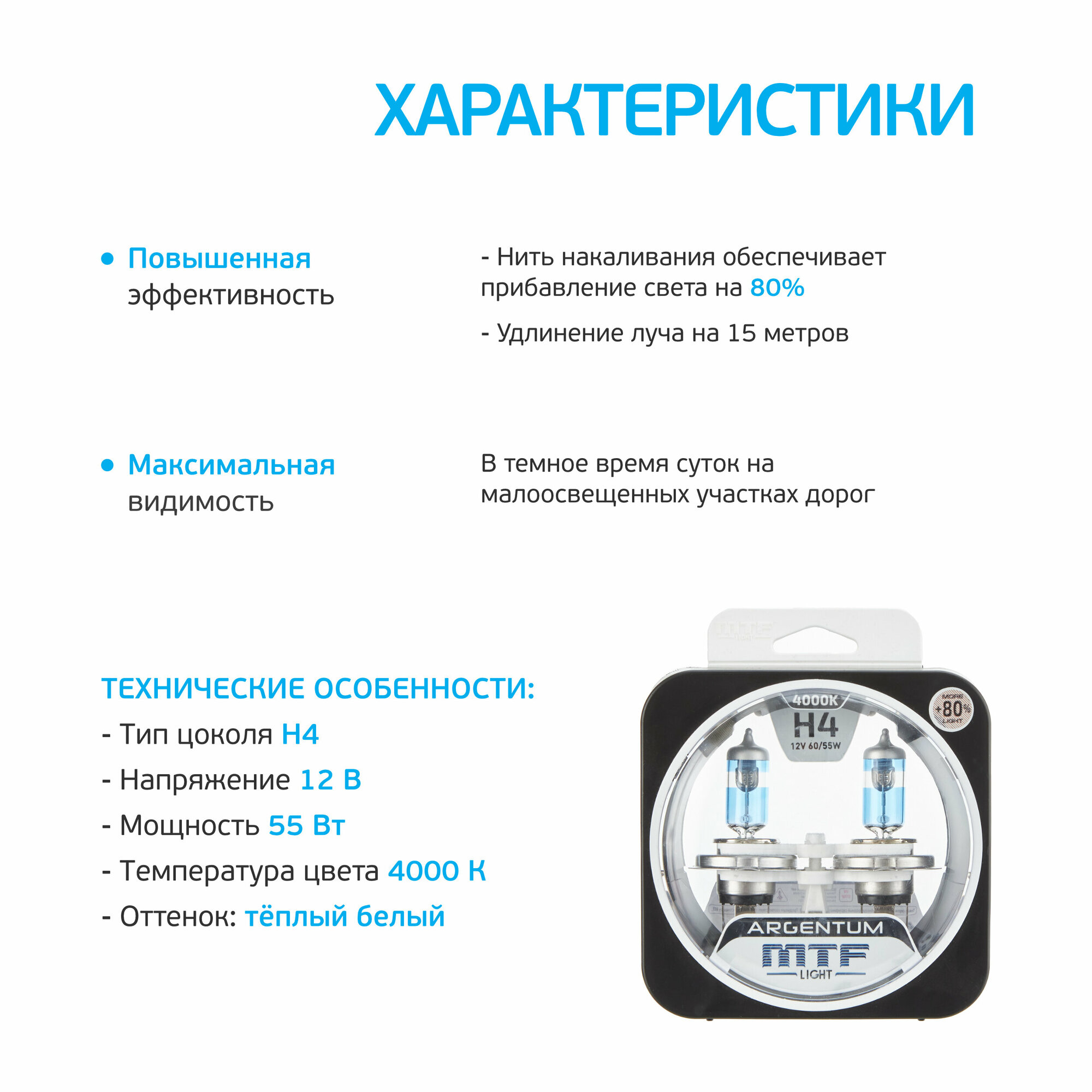На сегодняшний день товар «Лампа галогенная MTF Light Argentum +80% H-4 12V 55W 4000K (H8A1204) 2шт» можно купить с кешбеком в 1 магазине: Яндекс.Маркет