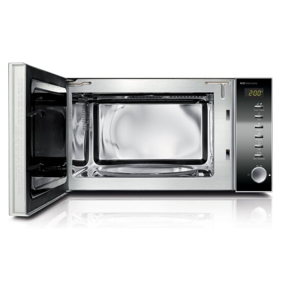Микроволновая печь CASO M 20 Electronic Black выделяется своим лаконичным дизайном в стиле «хай-тек». При этом она обладает простым функционалом. Управлять работой микроволновки можно с помощью кнопок и поворотного механизма. Микроволновая печь обеспечит быстрый и комфортный разогрев готовой еды, а также в ней удобно готовить некоторые блюда. Для этого предусмотрены 8 автопрограмм, включая автоматический разогрев и разморозку продуктов. Выбранные параметры и текущее состояние микроволновки отображаются на дисплее. Вместимость микроволновой печи CASO M 20 Electronic Black составляет 20 литров, а на вращающемся поддоне диаметром 24.5 см может поместиться большая тарелка для супа. Максимальная мощность микроволн – 800 Вт. Таймер рассчитан на один час работы микроволновой печи. Установив нужное время, можно заняться другими делами. Причем звуковой сигнал, который оповещает об окончании процесса приготовления, отключается при необходимости. Дверцу микроволновки легко открывать при помощи ручки.