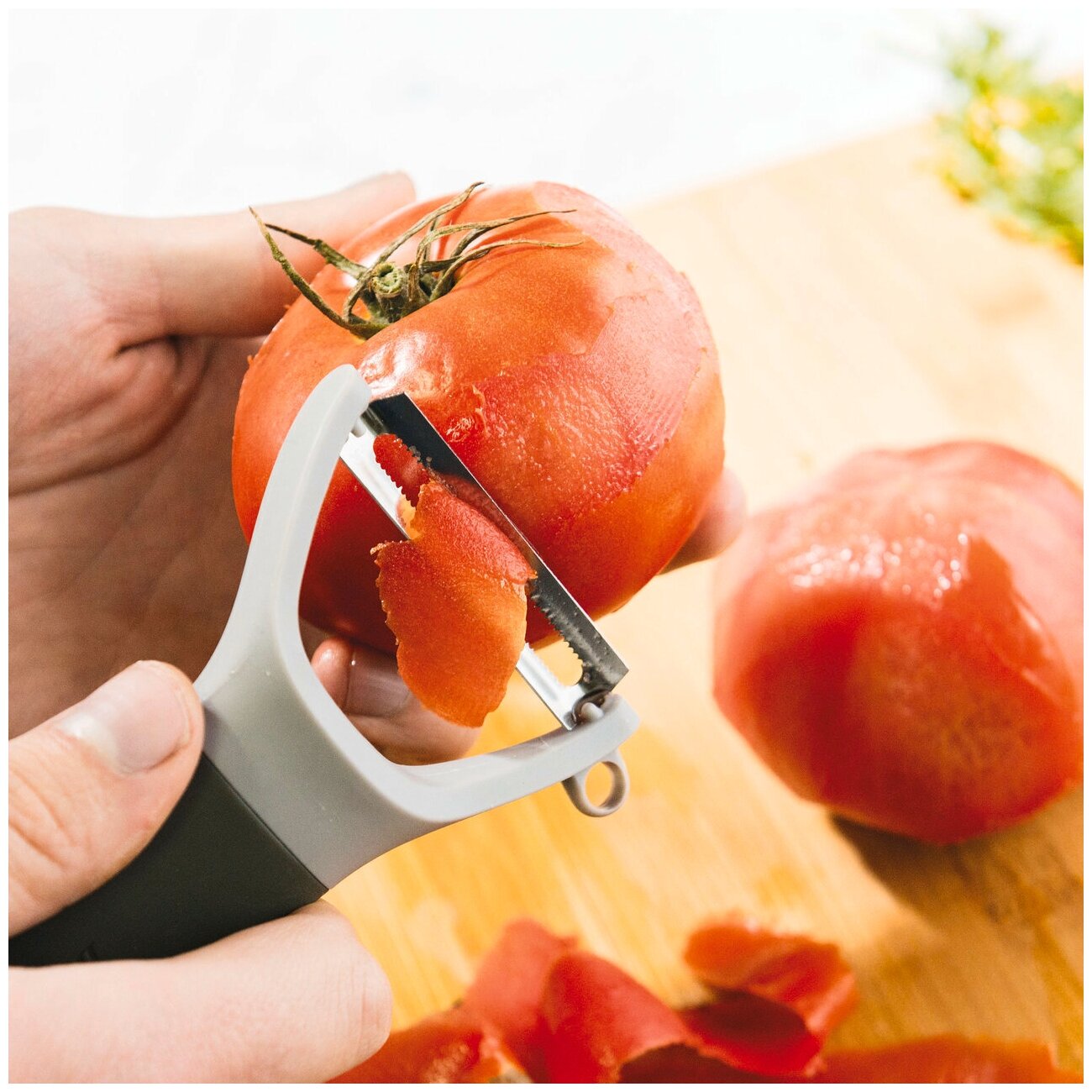 Нет такого фрукта или овоща, с которым бы вы не справились с помощью этого набора из пилера и терки. Каждый предмет имеет эргономичную мягкую ручку, которая подходит вашей руке как перчатка и обеспечивает удобный захват. Кроме того, пилеры имеют острое лезвие из нержавеющей стали, которое идеально подходит для быстрой и легкой очистки, и уголок для мгновенного удаления глазок картофеля. Добавьте к этому многофункциональную терку, которая легко справляется с имбирем, чесноком, цитрусовыми фруктами и т. д. с ее фактурной поверхностью, и вы получите превосходный набор кухонных инструментов.