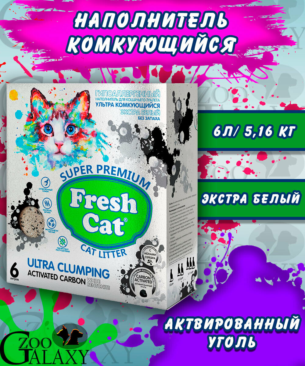 комкующийся с активированным углем 6л Fresh Cat
