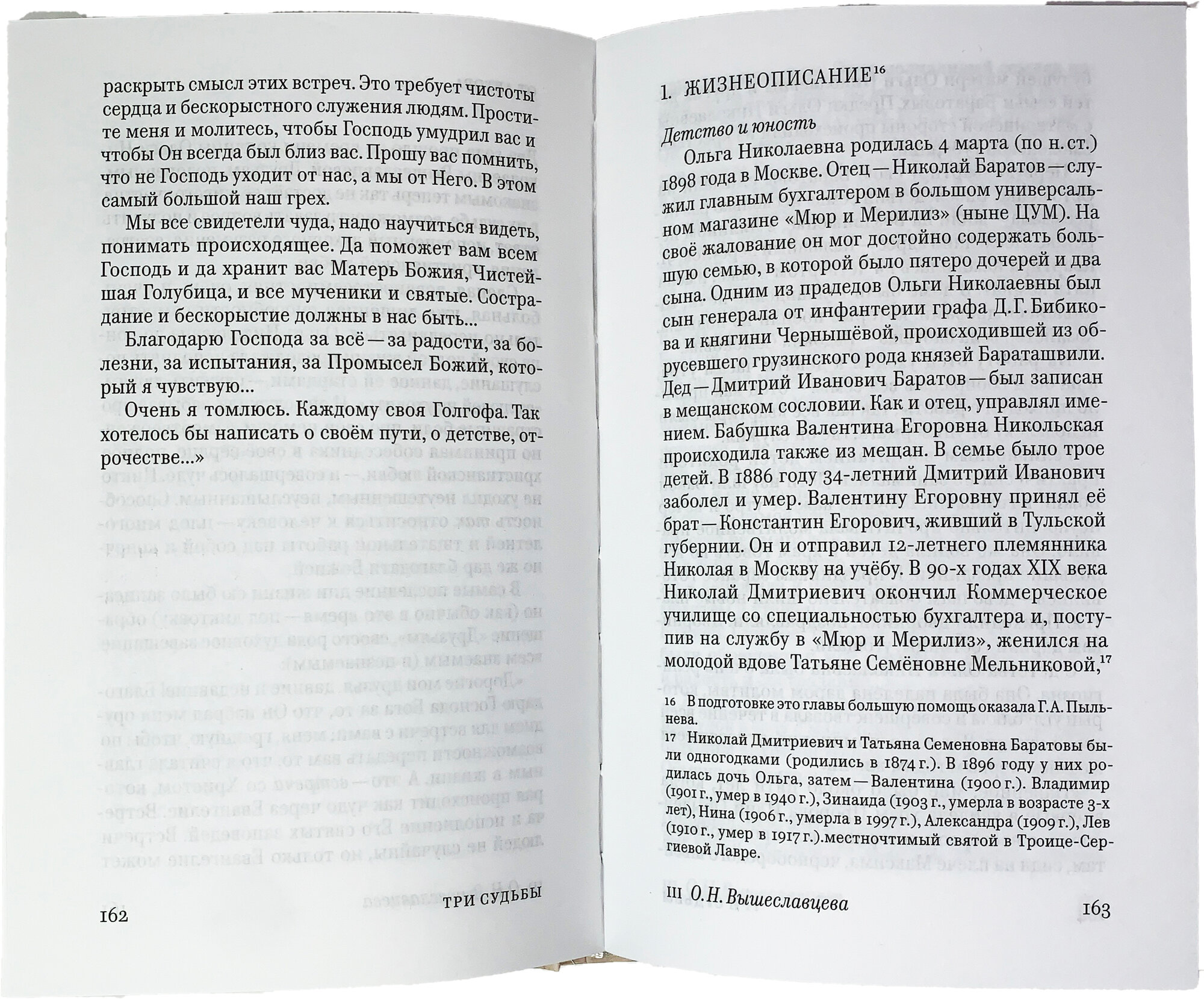 Русская женщина умеет любить так, как заповедал Господь: её любовь сияет для доброго и злого, она устоит против пыток, страха и угроз, сохраняет верность Богу, Церкви и своей земной Отчизне. Эту любовь и несли в себе достойные наследницы и духовные сёстры святых жён Российских, наши современницы: Надежда Андреевна Соболева (монахиня Силуана), известный учёный-историк Мария Ефимовна Сергеенко (инокиня Мария) и Ольга Николаевна Вышеславцева (инокиня Мария). Им и посвящена книга Александра Трофимова «Три судьбы», в которой собраны воспоминания, рассказы (устные или написанные ими), письма, дневниковые записи этих замечательных русских женщин, родившихся ещё в XIX веке и проживших долгую, трудную, но плодотворную жизнь, без остатка отданную Богу и людям.