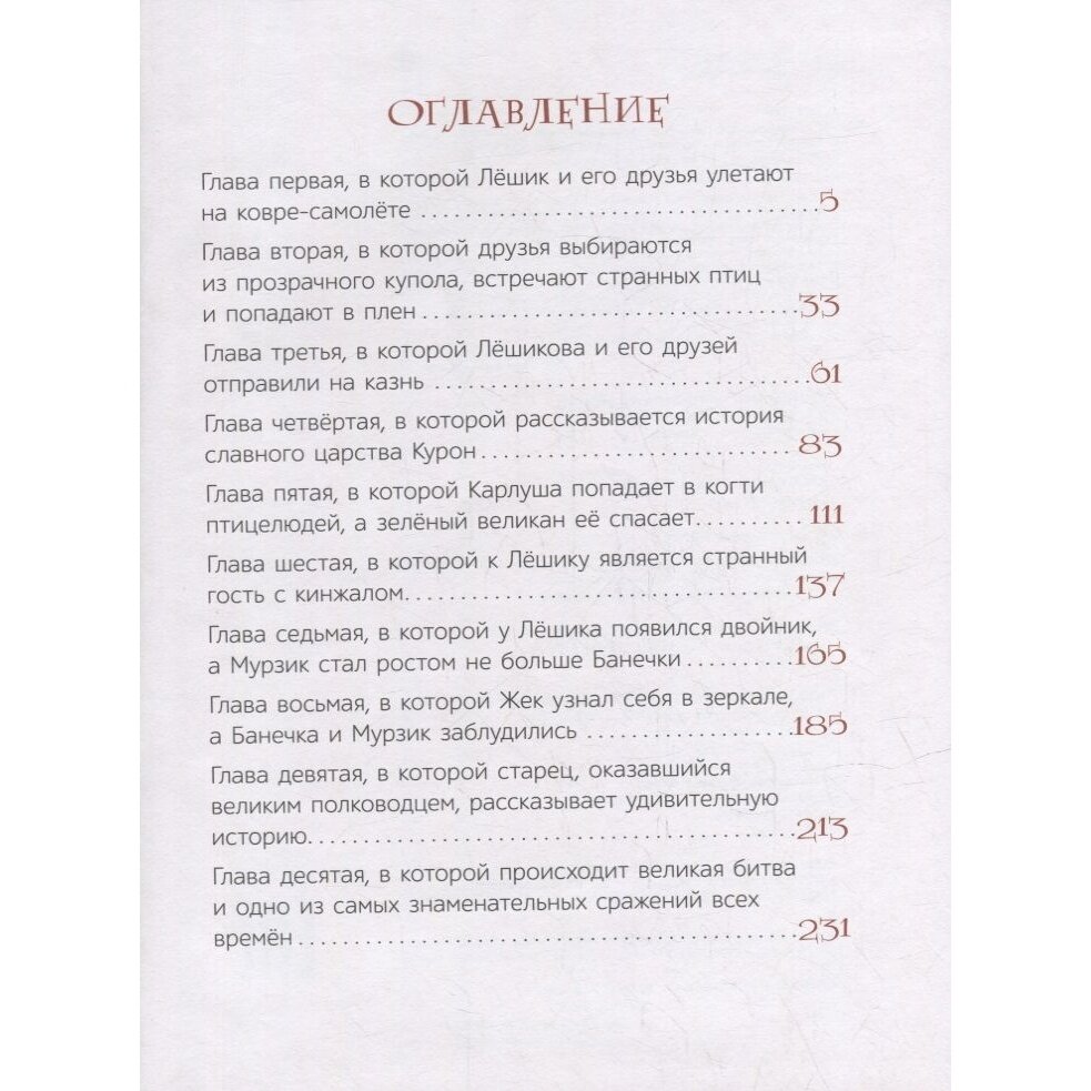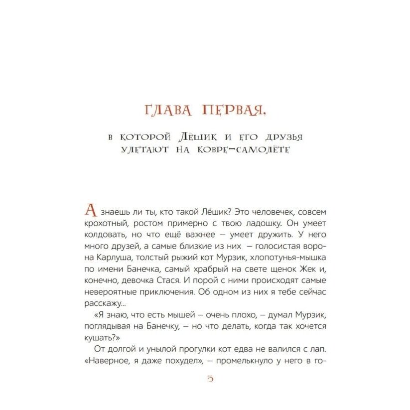 Сказочная повесть с симпатичными героями. Читается легко, за сюжетом ребенок следит с интересом. Прекрасные иллюстрации. Книга стоит своих денег. Ее можно читать несколько вечеров подряд, останавливаясь каждый раз на самом интересном месте. И ребенок уже с самого утра предвкушает: что же будет дальше? удастся ли Лешику и его друзьям победить Зло?. Конечно, удастся! Но не сразу... Сказочная повесть тем и хороша, что это не мозаика, сложенная из отдельных законченных историй, а одна большая история, каждая глава в которой - шаг к кульминации.