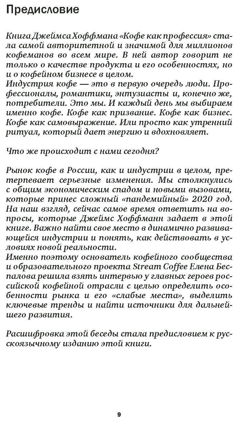 В годы мирового бума спешалти кофе признанный эксперт Джеймс Хоффманн фиксировал все этапы эволюции кофейной индустрии в своем блоге. Автор исследует самые разные аспекты кофейной культуры: от способов приготовления до выбора кофе в качестве профессиональной стези и тонкостей ведения бизнеса. "Кофе как профессия" - это настольная книга для всех, кто влюблен в кофе.