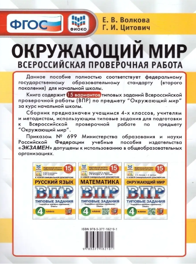Окружающий мир Всероссийская проверочная работа 4 класс Типовые задания 15 вариантов заданий Подробные критерии оценивания (Елена Васильевна Волкова, Елена Вячеславовна Волкова); Экзамен, 2023