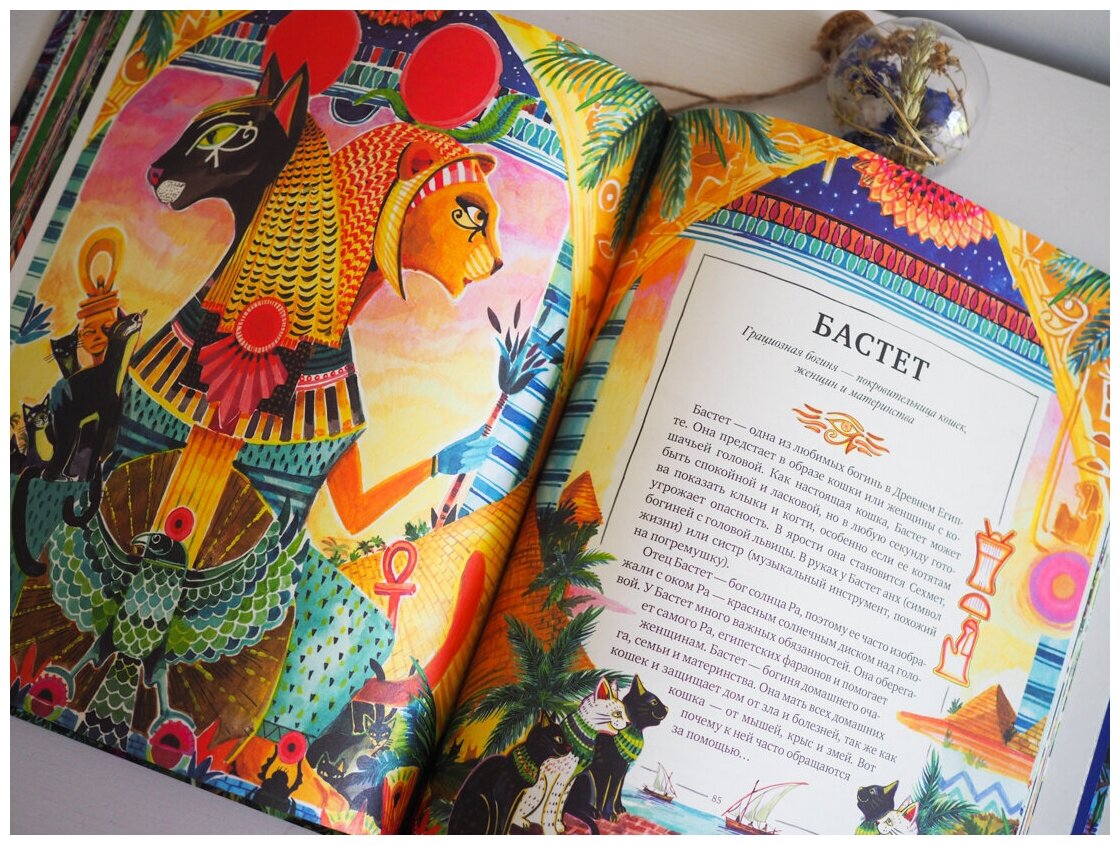 Красивая книга. Иллюстрации яркие, необычные, хочется брать книгу в руки и рассматривать каждый рисунок. По содержанию тоже все очень интересно. Понравилось, что после описания существа (но не каждого) на следующем развороте есть разворот с притчей или сказкой связанной с данным мифическим существом. Хотелось бы побольше персонажей.