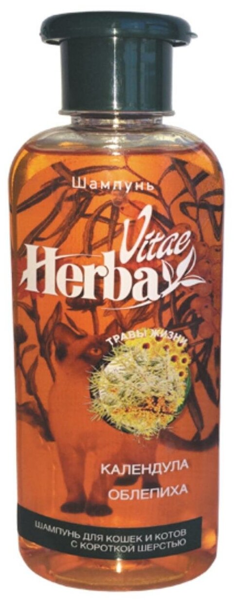 Шампунь для короткошерстных кошек Herba Vitae содержит экстракты облепихи и календулы. Издавна облепиха ценилась своими целебными свойствами — она содержит большое количество витаминов С, В и Е, а также каротин; оказывает смягчающее, ранозаживляющее и витаминизирующее действие на кожу, препятствует выпадению шерсти. Календула оказывает бактерицидное и дезинфицирующее действие, увлажняет кожу и шерсть, защищает от действия солнечных лучей. Мягкие моющие компоненты шампуня эффективно очищают кожу и шерсть, не повреждая природный защитный слой. Активные компоненты предупреждают появление перхоти, сухости и шелушения кожи. Шампунь обеспечивает сохранение структуры и монолитности шерстного покрова, сохраняет яркость природного окраса и блеск шерсти.