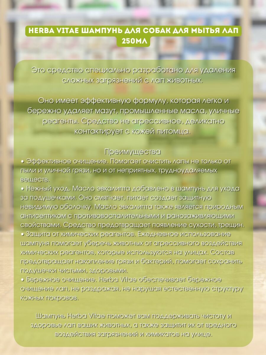 Шампунь для сильно загрязненных лап Herba Vitae 250мл ООО Тэрра Пласт (2114506)