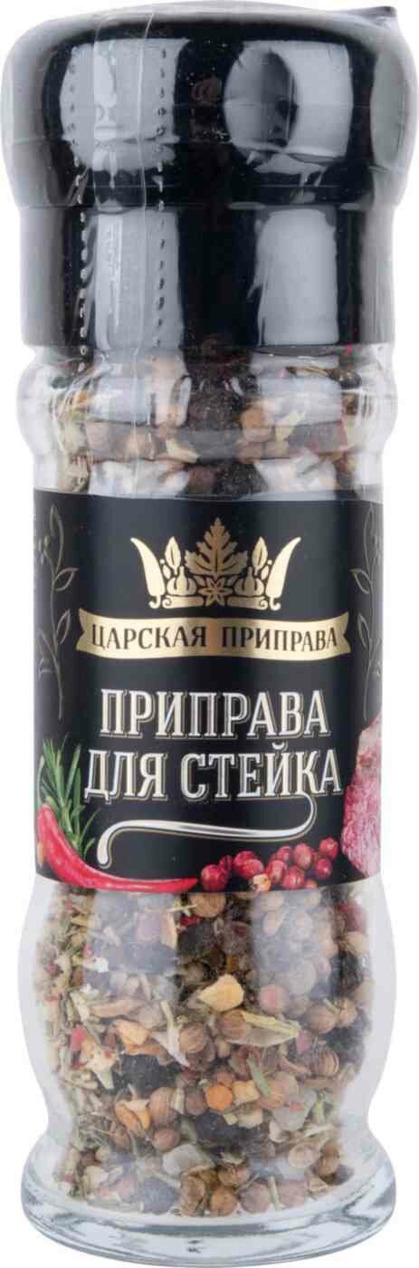 Универсальная приправа для стейков "Царская приправа" - это идеальное решение для любителей мясных блюд! Она создана из изысканных специй, которые придают стейку неповторимый вкус и аромат. Розовый перец, кориандр, тимьян и розмарин – все эти специи помогут создать легкий аромат и перечный вкус, который никого не оставит равнодушным.Приправа "Царская" также содержит чеснок, лук и соль, что делает ее еще более универсальной. Вы можете использовать эту приправу для приготовления различных мясных блюд, включая салаты, закуски, супы и вторые обеденные блюда.Приправа не содержит ГМО, искусственных красителей, глутамата натрия и ароматизаторов, что делает ее безопасной для употребления. Мельница удобна в использовании и позволяет легко добавлять нужное количество специй в блюдо. Не упустите возможность насладиться вкусом настоящего стейка с этой универсальной приправой.