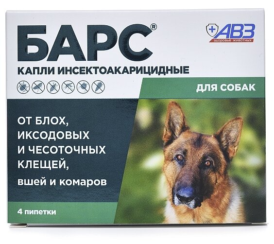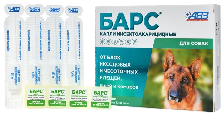 Капли Барс инсектоакарицидные для собак 4 пипетки*0.67мл