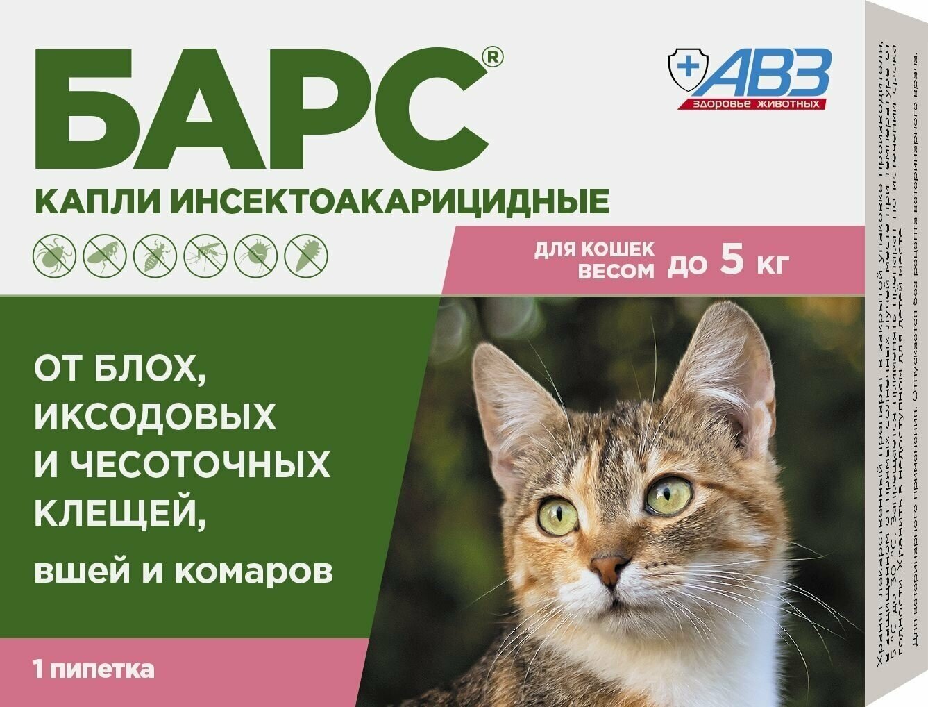 Капли Барс инсектоакарицидные для кошек до 5кг 1 пипетка*0.5мл