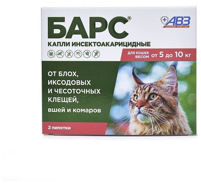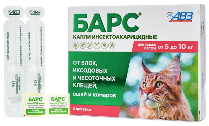 Капли Барс инсектоакарицидные для кошек от 5 до 10кг 2 пипетки*0.5мл