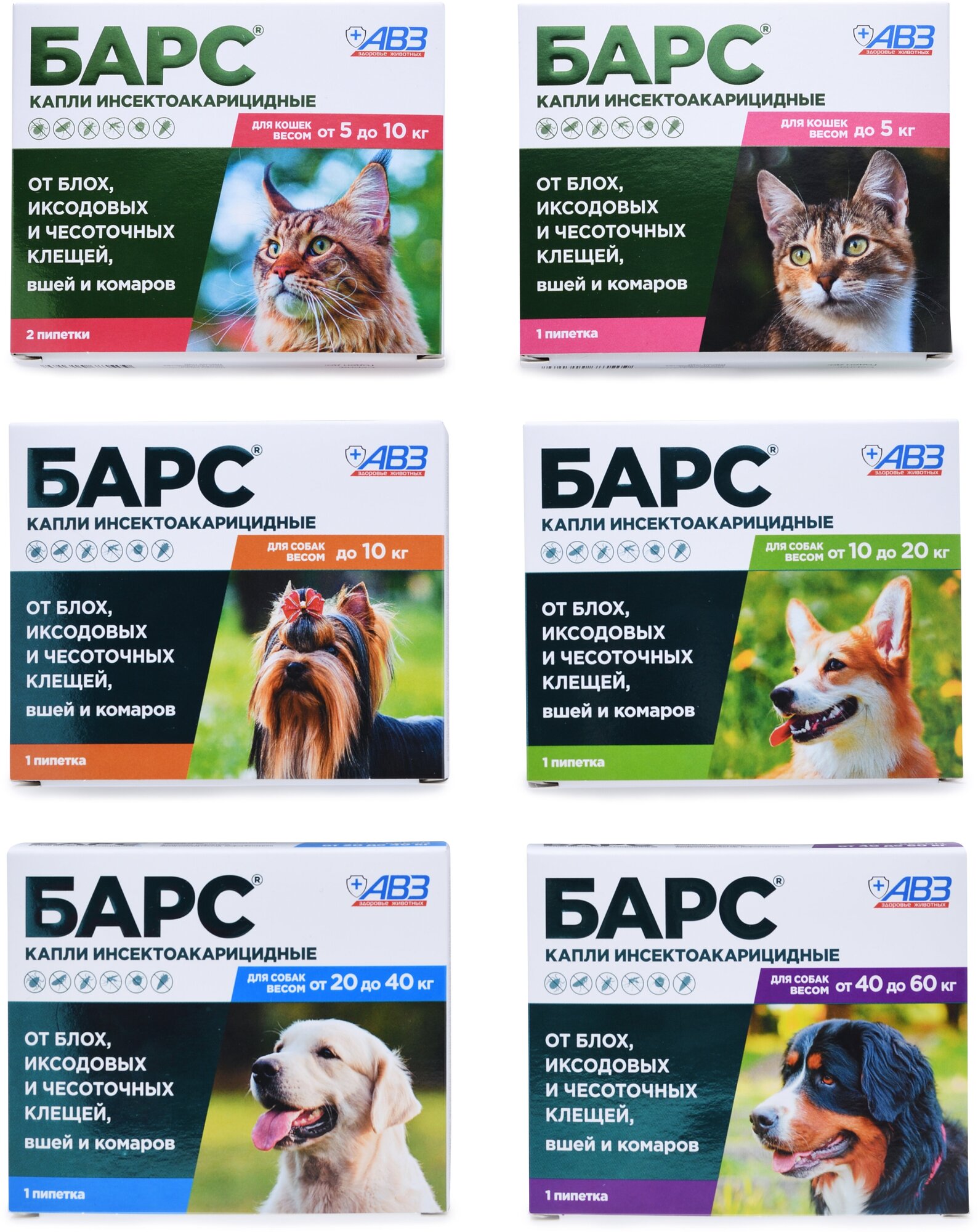 Капли, таблетки, спреи от блох и клещей для животных Барс