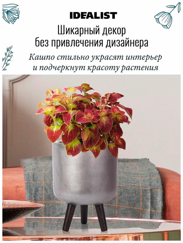 Инновационный материал файберстоун. Ультрамодная металлизированная поверхность в сочетании с лаконичной формой Кашпо на ножках из натурального бука Легкий вес. Изготовлено вручную. Для интерьерного озеленения. Аристократический характер Коллекция кашпо на ножках "" создана для тех, кто ценит тонкий вкус и лаконичность. Роскошные драгоценные оттенки кашпо в сочетании с элегантной формой - универсальное решение в фитодизайне. Кашпо "" выгодно подчеркнет красоту как цветущего, так и декоративно-лиственного растения в интерьере.Высокая прочность и современный вид. В основе – инновационный качественный материал файберстоун. Благодаря этому прочному композитному материалу горшки сохраняют свои характеристики, благородный внешний вид и аутентичность на долгое время. На вершине дизайна. Эффектные поверхности, приятные фактуры и природные цвета идеально передают текстуру камня и впечатляют, увлекают, завораживают! Горшки IDEALIST LITE сделаны вручную. Поверхность может иметь следы ручной обработки в виде легких сколов или потертостей. Это придает горшкам естественность и свидетельствует о творческом процессе производства. С помощью рук гончаров рождаются настоящие шедевры! Выбор в разнообразии. Коллекции IDEALIST LITE - это десятки форм, стилей и размеров, которые станут современной основой для озеленения и дизайна любого пространства: и небольшой квартиры, и просторного дома, и крупных общественных помещений. Удобство перемещения. Не удивляйтесь, солидный внешний вид и высокое качество исполнения IDEALIST LITE не превращают их в громоздких тяжеловесов. Благодаря использованию современного материала файберстоун даже самые крупные горшки остаются вполне мобильными. Защита природы - материал может быть переработан. Используя горшки IDEALIST, вы заботитесь о нашем наследии, ведь горшки можно переработать и не загрязнять природу! Возможность дренажа. В ряде моделей на дне есть специальная метка, которая позволяет просверлить дренажное отверстие.