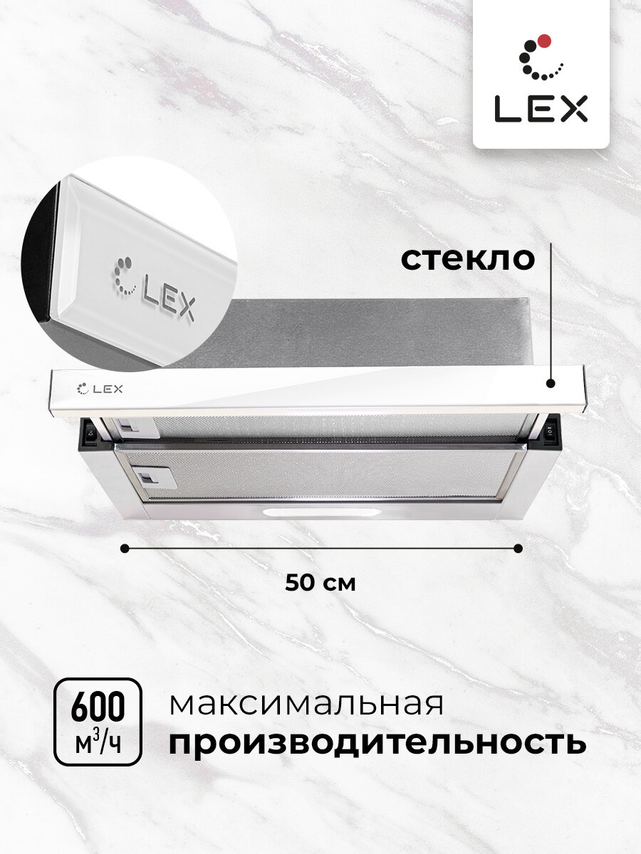 Сервис сравнения цен СкидкаГИД предлагает сравнить цены на товар «Встраиваемая кухонная вытяжка LEX HONVER G 500 WHITE»