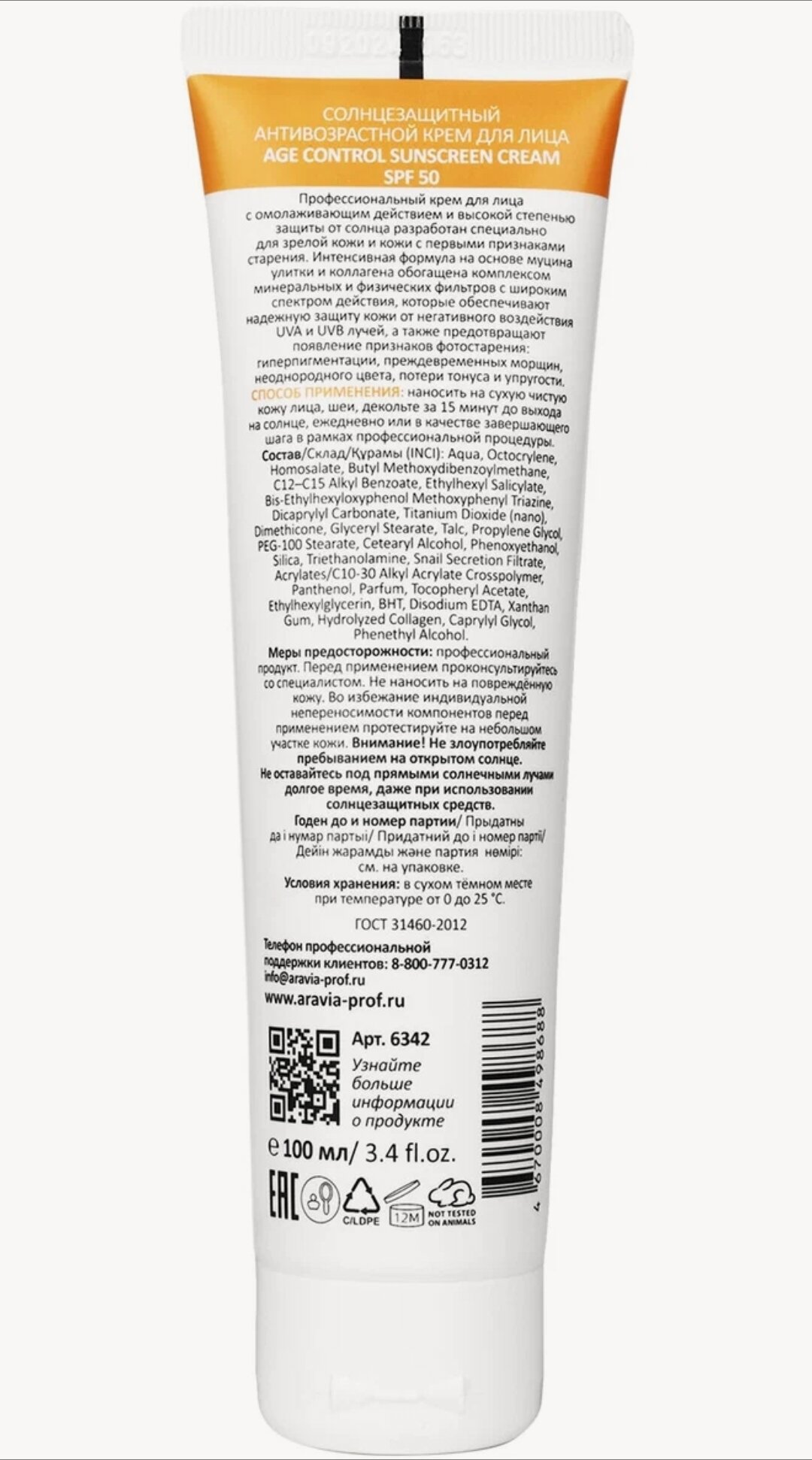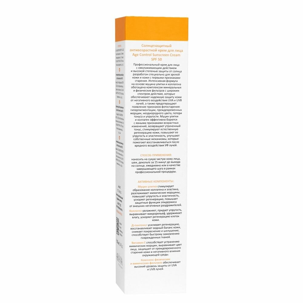 Aravia Professional Cолнцезащитный антивозрастной крем для лица Age Control Sunscreen Cream SPF 50 100 мл (Aravia Professional ) (ЭХ99989426823)