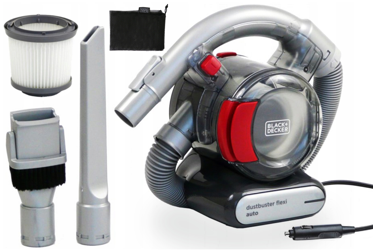 Автомобильный пылесос BLACK & DECKER -XK привлекает внимание компактным дизайном и стильной серо-красной расцветкой. Прибор предназначается для сухой очистки салона. Потребляемая мощность при работе не превышает 72 Вт.
