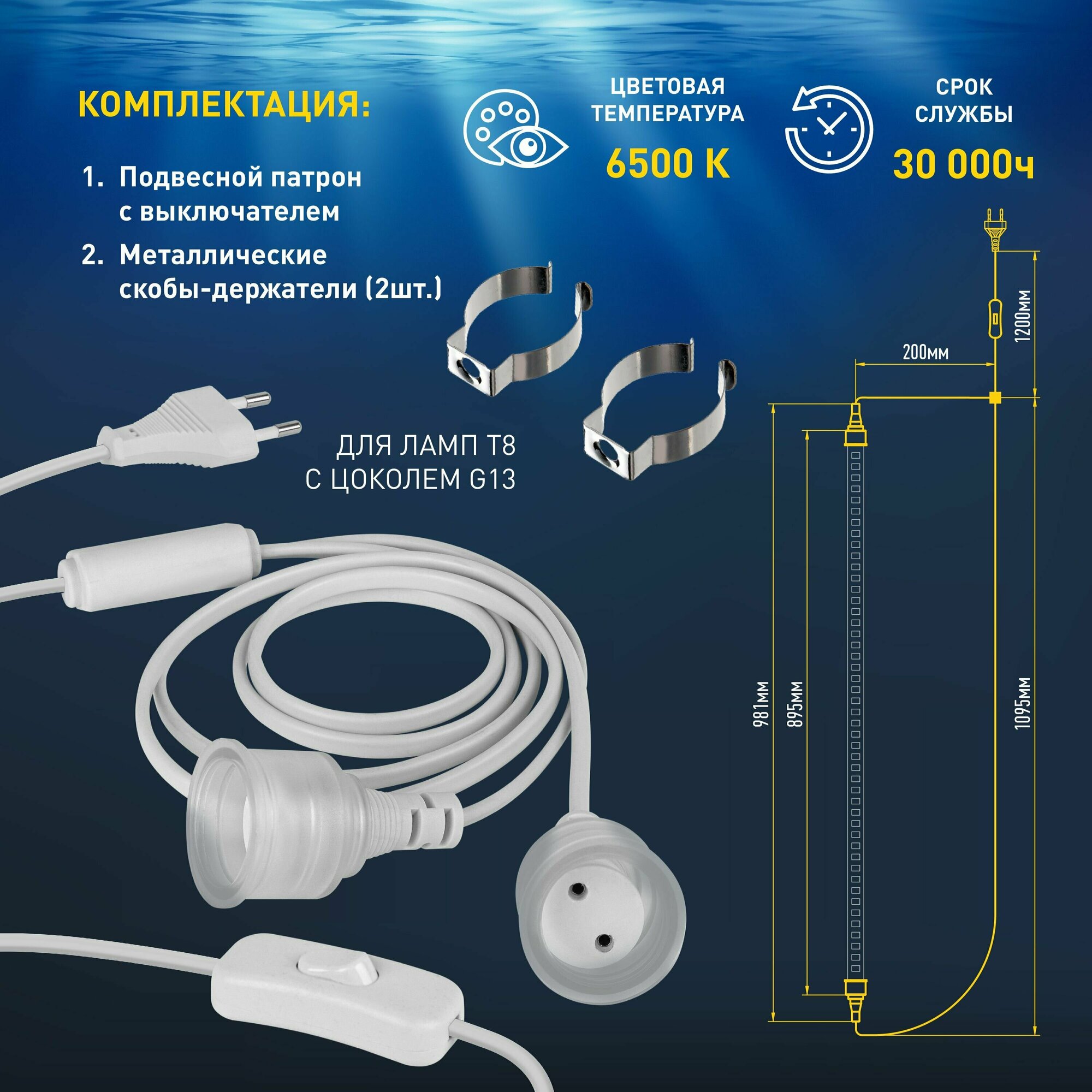 Подвесной светодиодный светильник для растений ЭРА Б0049313 Fito-18W-T5-Ra90