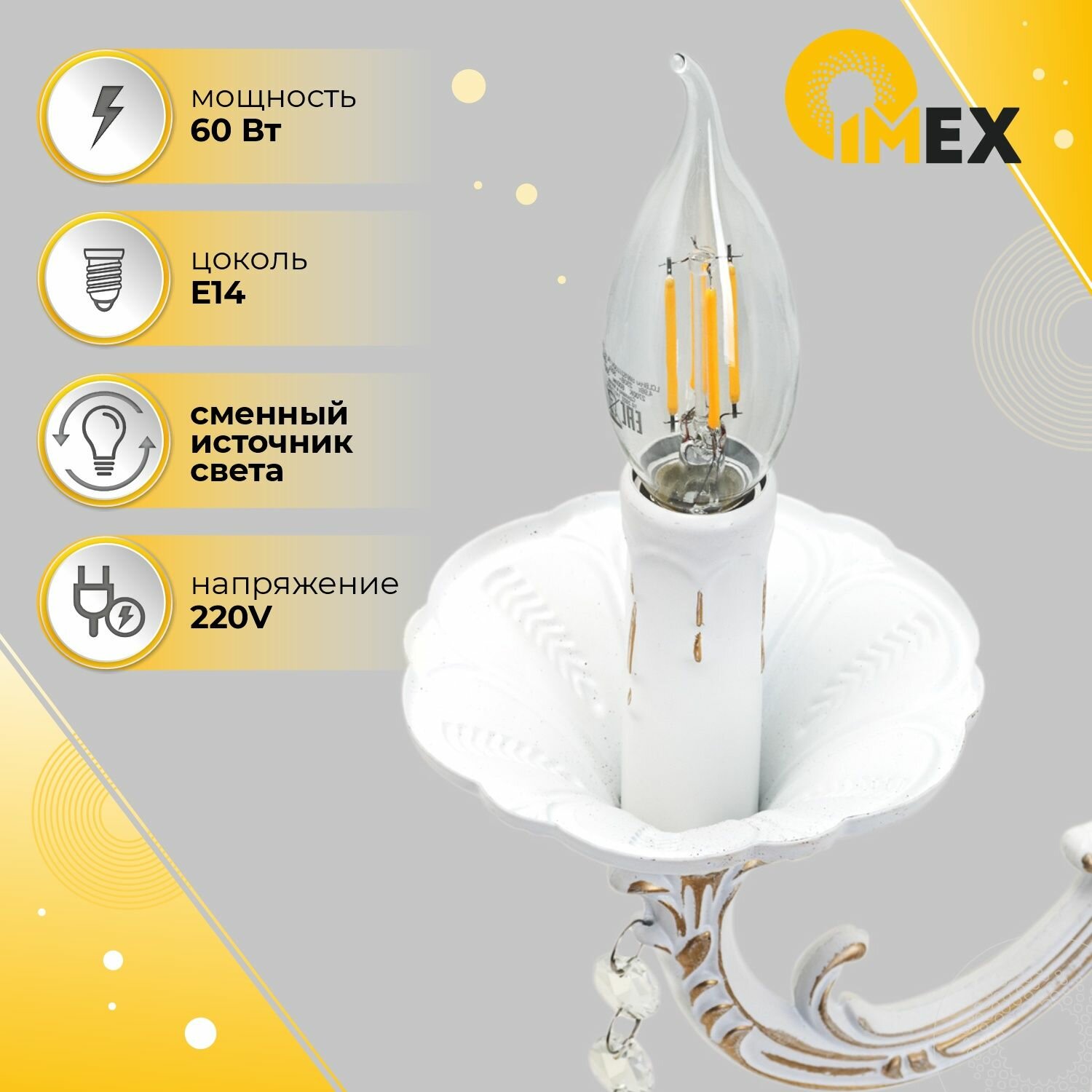 Бра - продукт известной компании Imex (Германия). Имеет максимальную мощность 60 Вт, освещает площадь до 3 кв. м. Отлично подойдет для таких мест, как гостиная, прихожая и коридор, кафе, спальня. Впишется в интерьеры следующих стилей: классический, арт-деко.