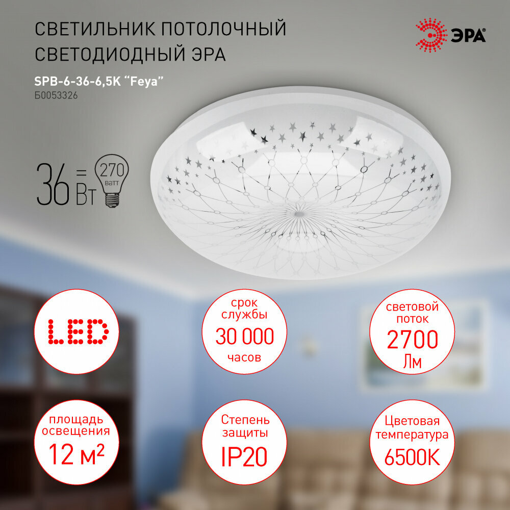 Потолочный светодиодный светильник ЭРА SPB-6-36-65K Feya круглый Б0053326 SPB-6-36-6,5K Feya