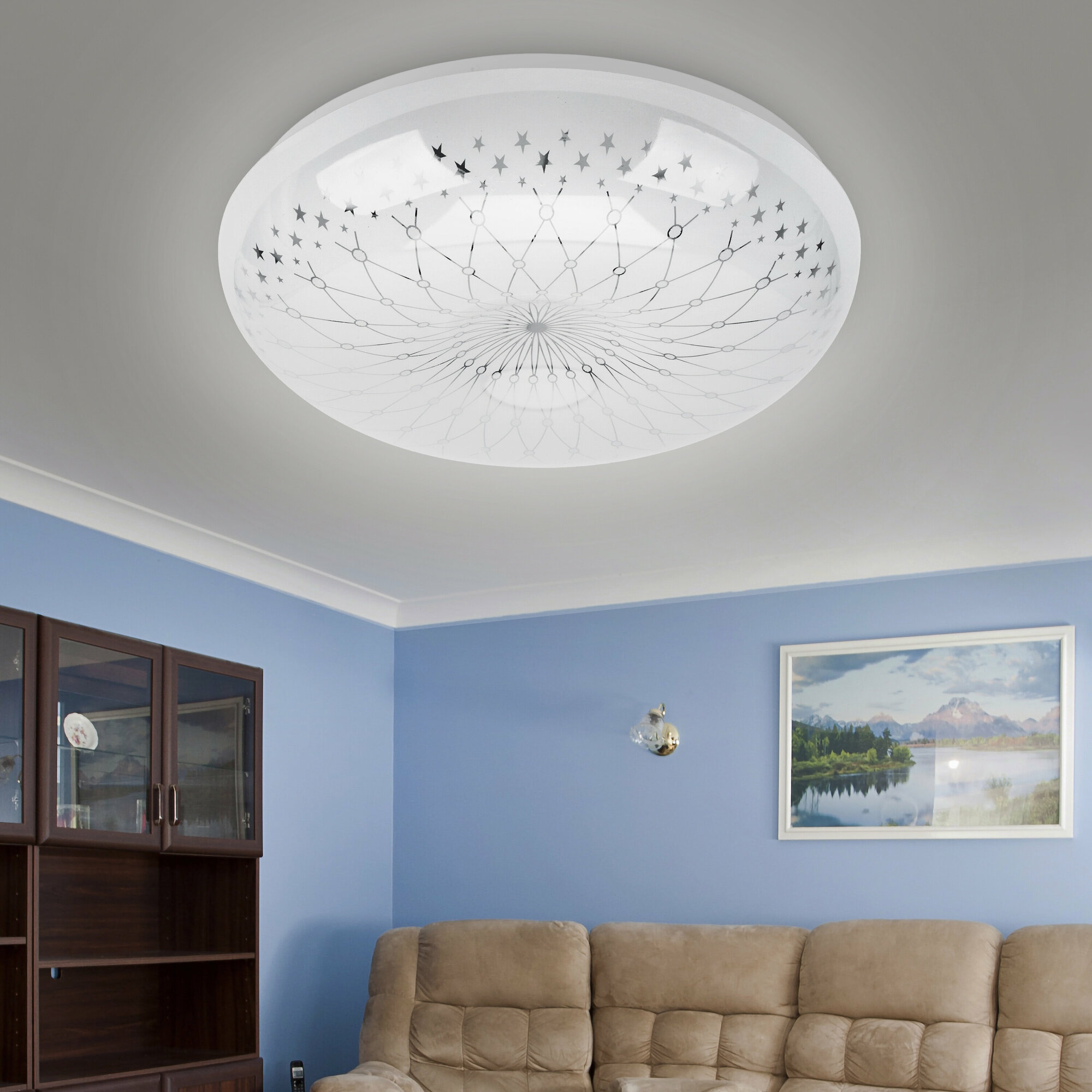Светодиодный потолочный светильник SPB-6 Фея от компании ЭРА идеальный вариант для освещения Вашего пространства! Ее размеры позволяют гармонично разместить в любом помещении. За счет рассеивателя из непрозрачного пластика обеспечивается симметричное распределение светового потока. В совокупности с цветовой температурой в 6500 К создается приятное белое свечение, защищающее глаза. Восхитительный дизайн плафона создаст приятную обстановку в Вашем доме. Узор из переплетающихся линий прекрасно сочетается с круглым плоским корпусом. Крохотные звезды, разбросанные по окружности рассеивателя, придают светильнику динамики. Такая LED люстра идеальна для оформления света детской, гостиной или спальне. Мощность в 36 Вт и срок службы в 30 000 часов подарят долгую и бесперебойную работу электросветильника SPB-6 Фея . Купите потолочную люстру ЭРА воплощайте любые идеи!