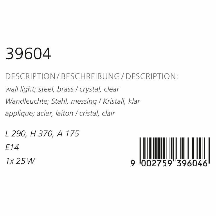 Бра хрустальное Fenoullet 1 - продукт известной компании Eglo (Австрия). Имеет максимальную мощность 25 Вт, освещает площадь до 1.25 кв. м. Отлично подойдет для таких мест, как гостиная, прихожая и коридор, спальня. Впишется в интерьеры следующих стилей: модерн.