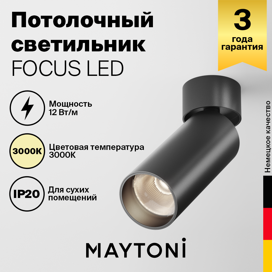 Накладной светильник светодиодный FOCUS LED - продукт известной компании Maytoni (Германия). Имеет максимальную мощность 12 Вт, освещает площадь до 2.4 кв. м. Отлично подойдет для таких мест, как гостиная, кафе, кухня, экспозиция, офис, магазин. Впишется в интерьеры следующих стилей: техно.