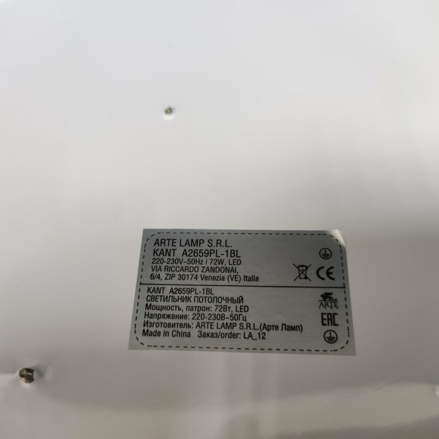 | место установки | На потолок |