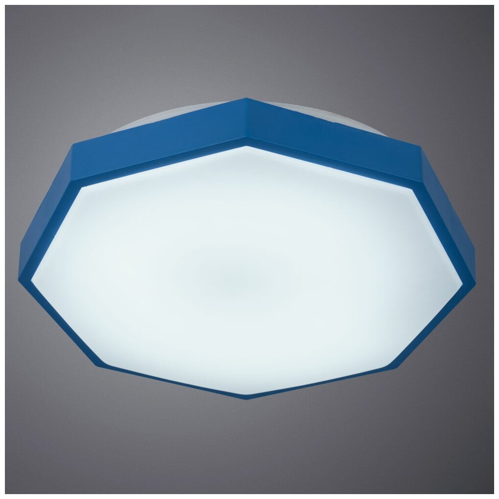 Светильник Arte Lamp серии KANT. Подчеркнет стиль помещения. Высота 7.5 cm. Диаметр 48 cm Параметры пылевлагозащиты IP — 20. Плафон пластиковый белого цвета, а материал/цвет арматуры металл/синий. Имеются встроенные светодиодные лампы, рассчитанные на весь срок службы светильника. Страна происхождения бренда — Италия.