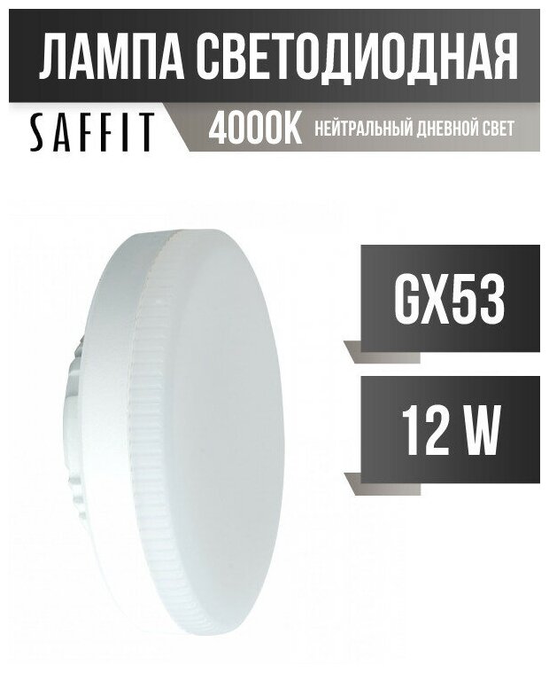Лампа светодиодная Saffit GX53 12W 4000K белая SBGX5312 / 55189