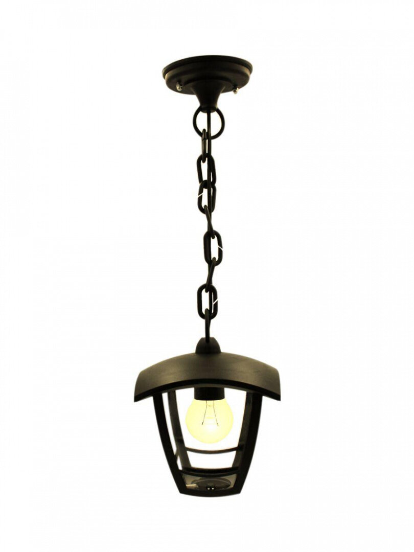 Садово-парковый светильник с артикулом выполнен в классическом стиле, который является универсальным. Добавит шарм в любую обстановку. Корпус изготовлен из пластика, а рассеиватель выполнен из поликарбоната. Материалы устойчивы к механическим повреждениям, а также воздействию температуры и солнечного света. Рассеиватель прозрачный, и благодаря этому потери от источника свечения минимальны. Корпус имеет классический черный цвет, который легко впишется в любую обстановку. Изделие предназначено для подвешивания и в своем комплекте уже имеет основание с цепью. В качестве источника свечения допустимо использовать лампы накаливания мощностью до 60 Вт и патроном Е27, энергосберегающие же лампы ограничены только размером, который можно разместить в корпусе светильника. Светильник работает от сети 220 Вольт и не требует дополнительных устройств при подключении.преимущества:- Легкий корпус.- Не подвержен коррозии.- Сохраняет внешний вид и не выгорает в течении всего срока службы.- Стандартный патрон позволит использовать как стандартные, так и энергосберегающие лампы.- Есть возможность легко заменить источник свечения.- Легко собрать и смонтировать.