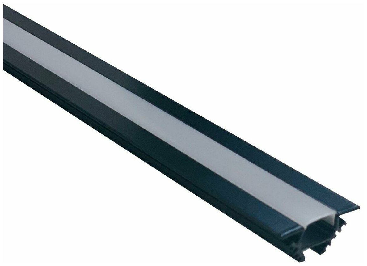 Алюминиевый профиль для светодиодной ленты по своей конструкции является накладным угловым, а это значит, что такой вариант профиля идеально подходит для монтажа накладным способом в угол между двумя плоскими поверхностями, а его свечение направлено под углом 45°. Данная модель алюминиевого профиля имеет размер 28,5х10,4х2000мм, и внутри него можно разместить светодиодную ленту шириной до 10мм. В алюминиевый профиль уже установлен рассеиватель белого цвета, изготовленный из светорассеивающего поликарбоната. Такой рассеиватель пропускает 70% светового потока и делает его более мягким и приятным для Ваших глаз, благодаря чему наиболее часто используется для решения и декоративных задач, и задач по организации основного освещения. Также в комплекте с профилем идут заглушки в количестве 2-х шт. Благодаря дробеструйной обработке профиль идеально гладкий, а нанесенная на поверхность профиля порошковая краска элегантного черного цвета защитит профиль от окисления и поможет подчеркнуть нетривиальный дизайн помещения.