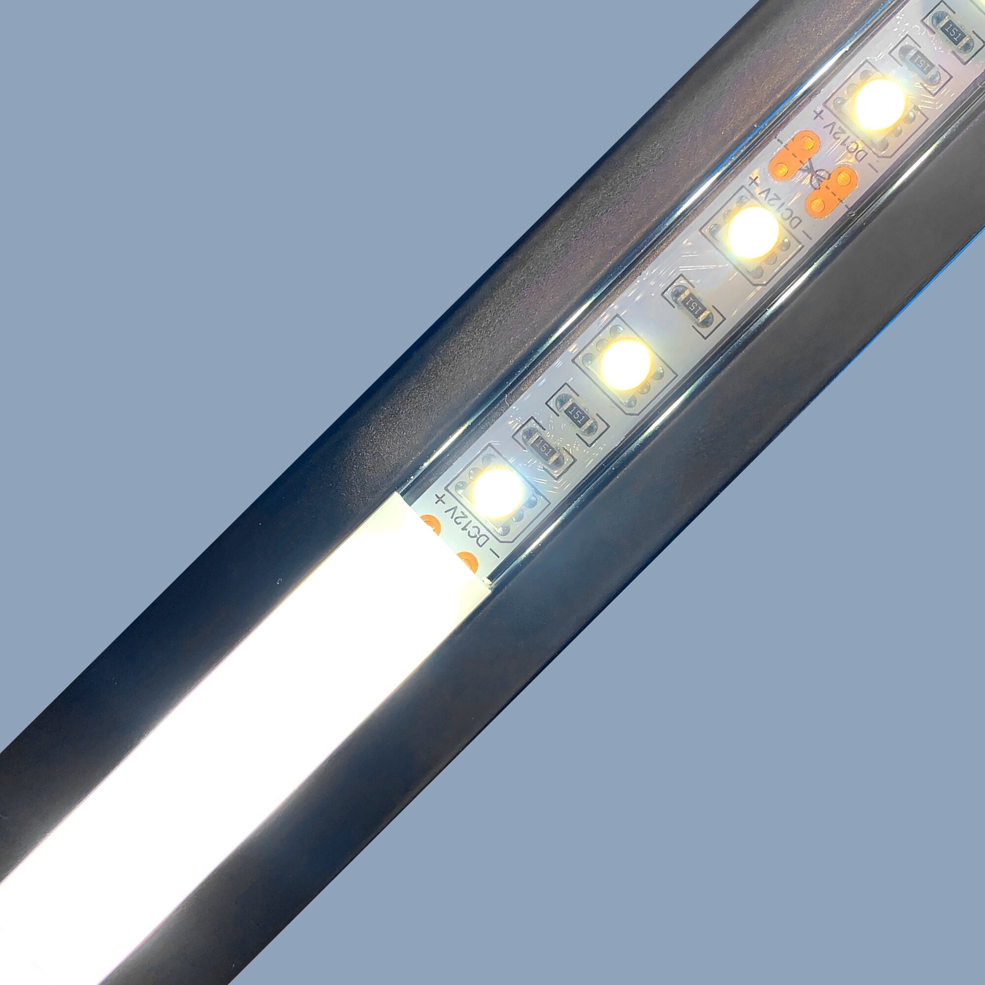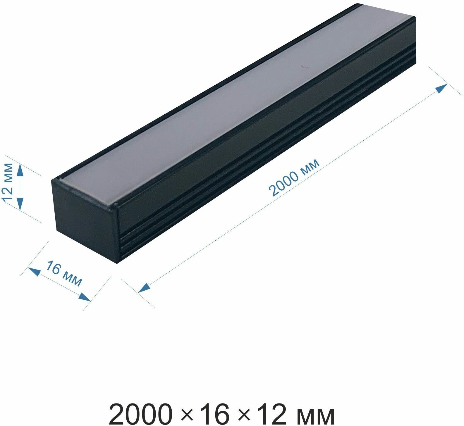 Алюминиевый профиль для светодиодной ленты по своей конструкции является накладным, что делает этот профиль отличным решением для монтажа на любую плоскую поверхность. Данная модель алюминиевого профиля имеет размер 16х12х2000мм, и внутри него можно разместить светодиодную ленту шириной до 10мм. В алюминиевый профиль уже установлен рассеиватель белого цвета, изготовленный из светорассеивающего поликарбоната. Такой рассеиватель пропускает 70% светового потока и делает его более мягким и приятным для Ваших глаз, благодаря чему наиболее часто используется для решения и декоративных задач, и задач по организации основного освещения. Также в комплекте с профилем идут заглушки в количестве 2-х шт. Благодаря дробеструйной обработке профиль идеально гладкий, а нанесенная на поверхность профиля порошковая краска элегантного черного цвета защитит профиль от окисления и поможет подчеркнуть нетривиальный дизайн помещения. Преимущества: - Идеально гладкая матовая поверхность. - Защищен от окисления и возникновения теплых пятен благодаря анодированию. - Продлевает срок службы светодиодной ленты. - Позволяет создать любые дизайнерские решения. - Свечение будет мягким и в то же время ярким благодаря рассеивателю из светорассеивающего поликарбоната. - Защищает светодиодную ленту от механических повреждений. - Защищает светодиодную ленту от пыли и влаги. - Благодаря идеально ровным стыкам не требуется обрабатывать профиль перед стыковкой.
