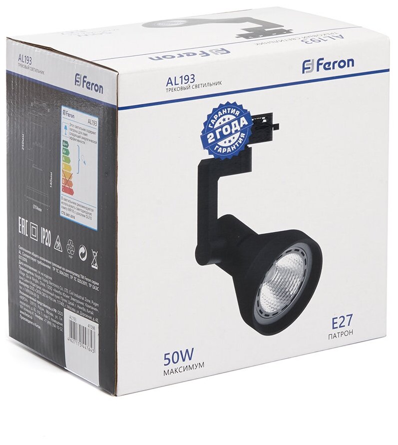 Трековый светильник AL193 - продукт известной компании Feron (Россия). Имеет максимальную мощность 50 Вт. Отлично подойдет для таких мест, как гостиная, магазин. Впишется в интерьеры следующих стилей: современный.