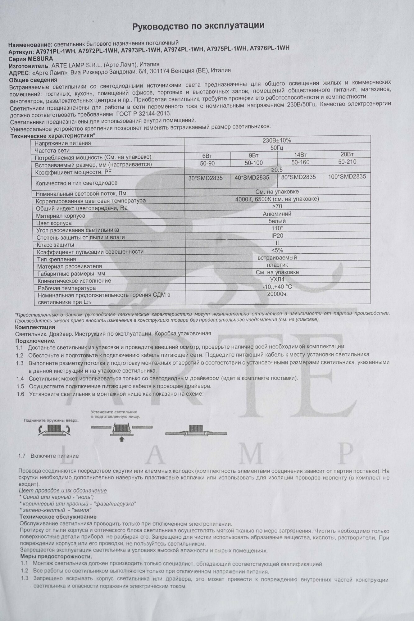 Сервис сравнения цен СкидкаГИД предлагает сравнить цены на товар «Встраиваемый светодиодный светильник Arte Lamp Mesura A7976PL-1WH»