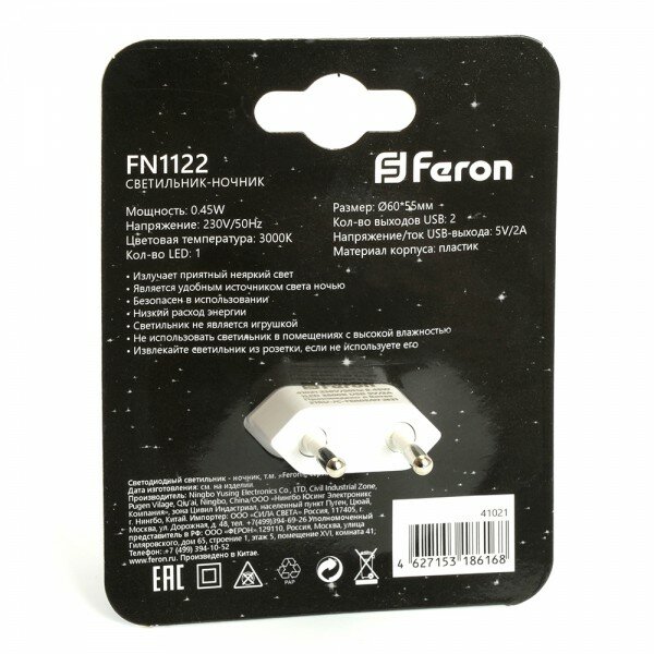 Ночник светодиодный с USB - продукт известной компании Feron (Китай). Имеет максимальную мощность 0.45 Вт, освещает площадь до 0.09 кв. м. Отлично подойдет для таких мест, как гостиная, прихожая и коридор, спальня. Впишется в интерьеры следующих стилей: модерн.