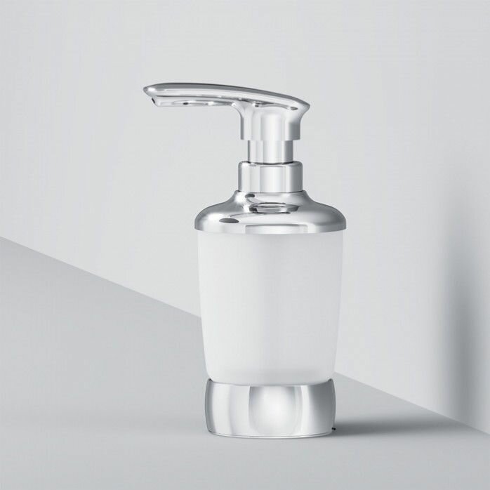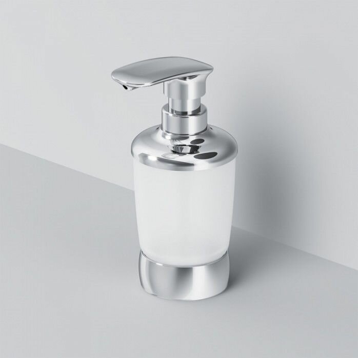 Стеклянный диспенсер для жидкого мыла, отдельно стоящий, хром