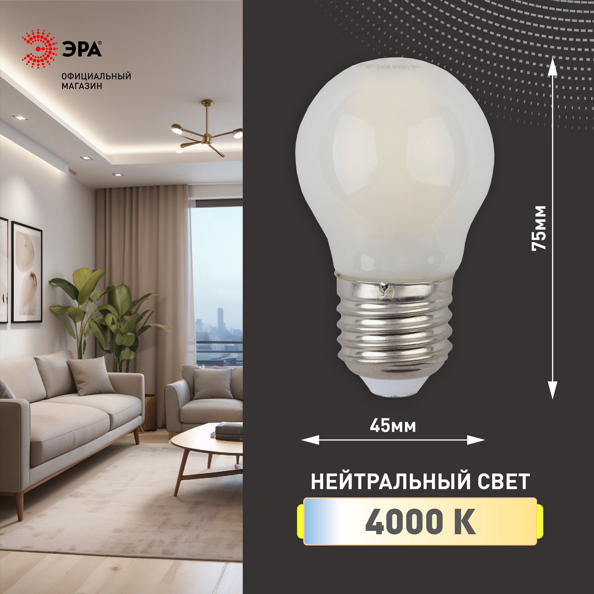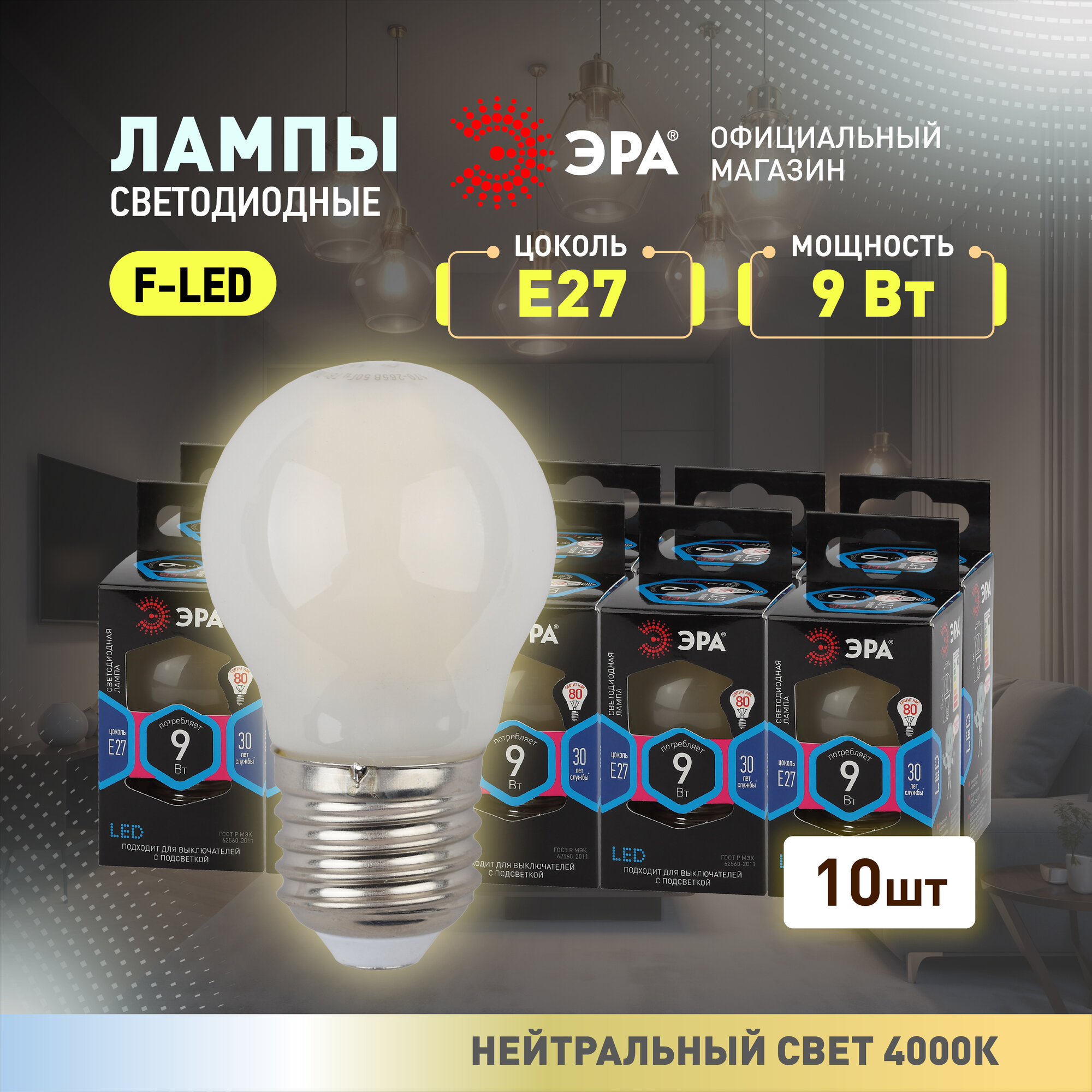 Лампа светодиодная филаментная ЭРА E27 9W 4000K прозрачная Б0047029 F-LED P45-9w-840-E27