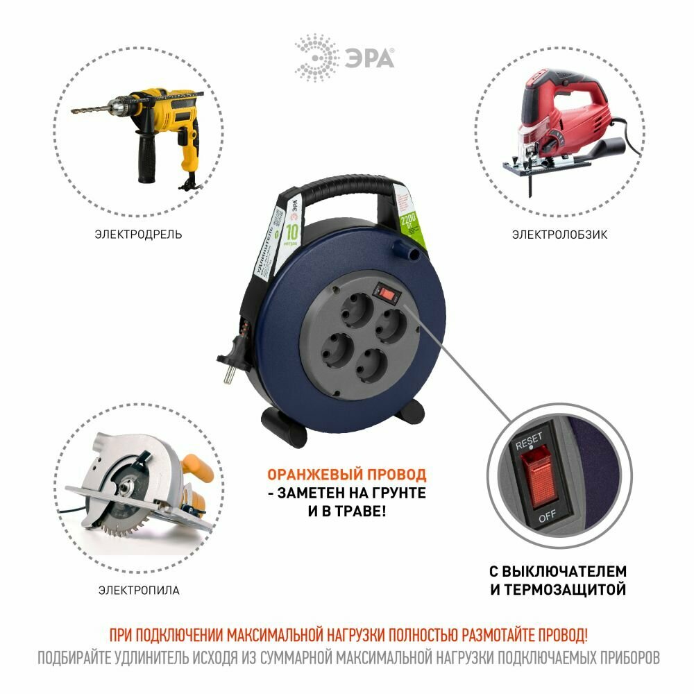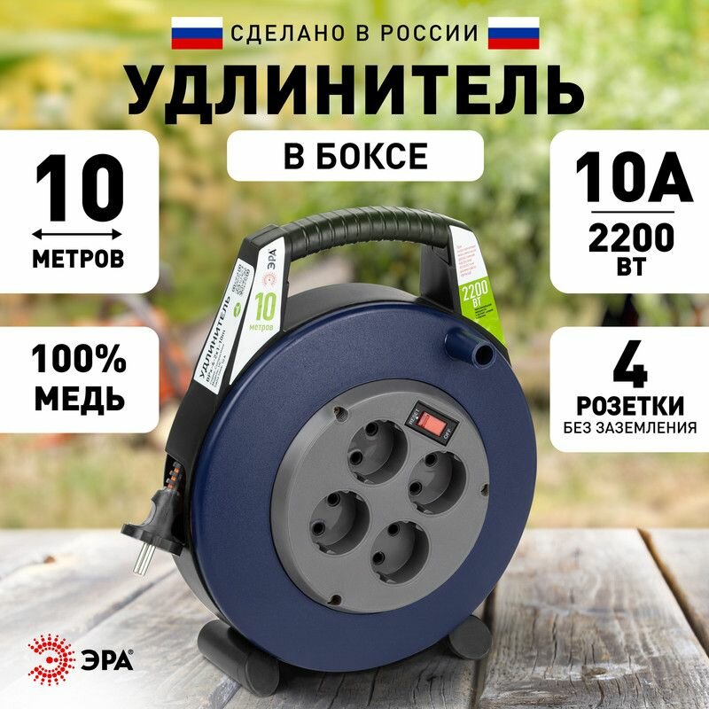 Удлинитель силовой ЭРА 4гн 10м б/з Б0052926 BPx-4-2x1-10m