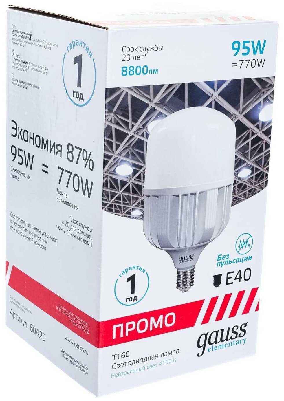 Сервис сравнения цен СкидкаГИД предлагает сравнить цены на товар «Лампа светодиодная Gauss E40 95W 4100K матовая / 60420»