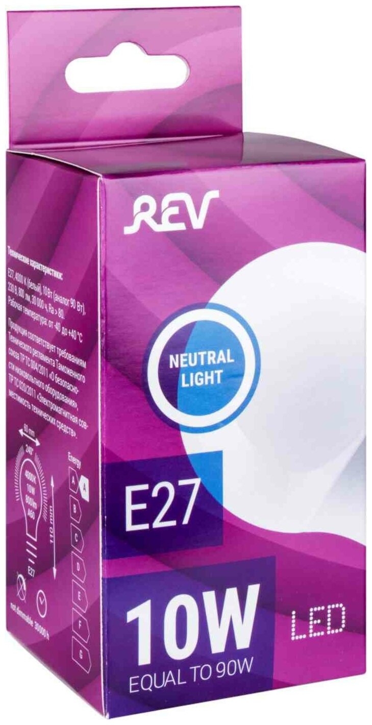 Лампа светодиодная REV A60 Е27 10W 4000K нейтральный белый свет груша 32267 2