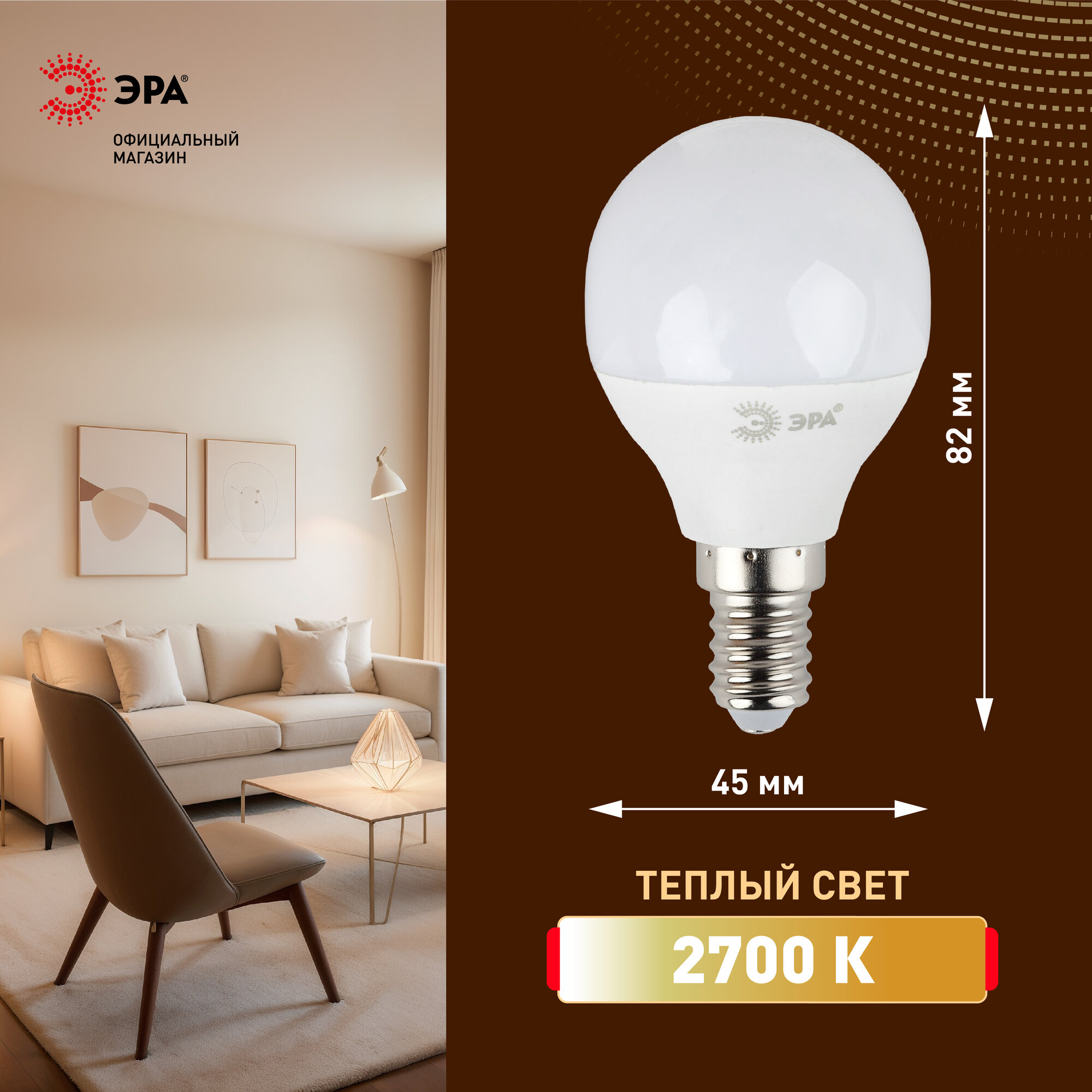 Лампа светодиодная ЭРА E14 10W 2700K матовая Б0052378 LED P45-10W-827-E14 R