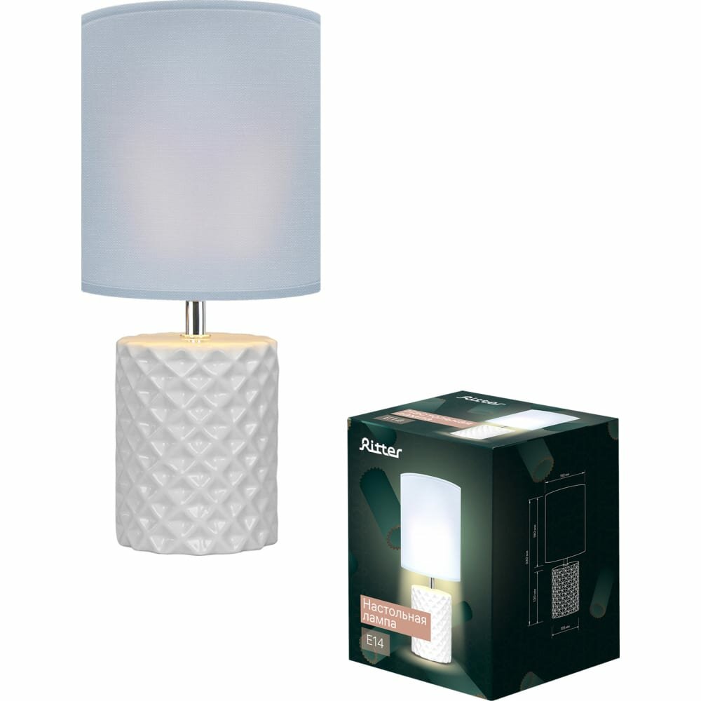 Настольная лампа SQUAMA упакована в фирменную коробку из плотного картона, в комплекте кроме светильника находится инструкция по эксплуатации. Для удобства покупателей на одной из фотографий в карточке товара размещен QR-код, по которому можно связаться со службой поддержки «Ritter», чтобы задать вопросы по комплектности, монтажу, подключению люстры, условиям эксплуатации люстры, упаковке, доставке.