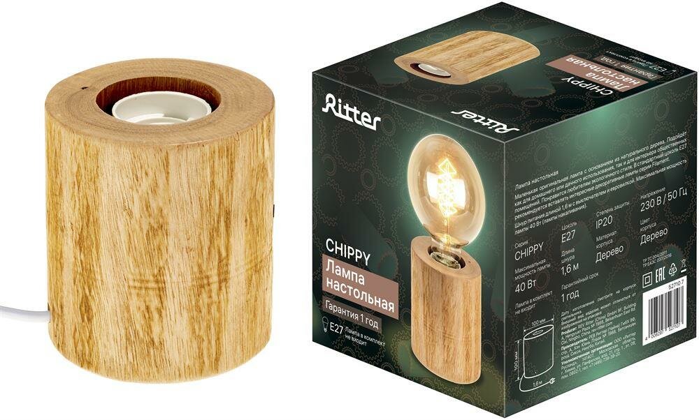 Настольная лампа CHIPPY упакована в стильный картонный короб, в комплекте также находится инструкция по эксплуатации и встроенный провод. Для удобства покупателей на одной из фотографий в карточке товара размещен QR-код, по которому можно связаться со службой поддержки «Ritter».
